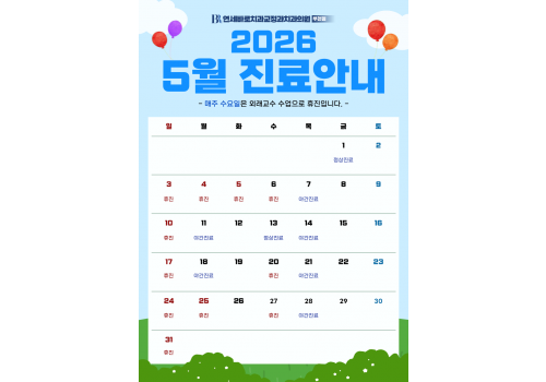 ・ 방학기간 (12, 1, 2월-동계, 7, 8월- 하계)에는 수요일도 진료